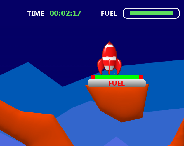 The crew of Moonbase 1 urgently needs spare parts to maintain the life support system. Your task is to deliver them on time. You should pass FIVE areas. Travel from one landing point to another, follow the arrows. Be careful though and don't use up your fuel! Your mission will fail if you can't complete it in under 5 minutes. If you think it's impossible, watch the video! Avoid moving around frantically. Just follow Newton's laws of motion. As much as I liked Atari's legendary Lunar Lander, I was constantly running out of fuel. That's why I created my own moon lander game with enough refueling stations to successfully complete the game. Anyway, it's still challenging. Note that sound and background music are disabled by default.